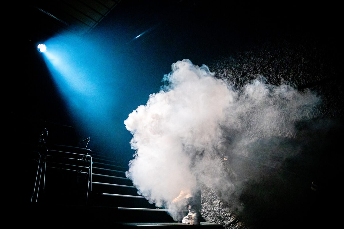 Im Stück kommen Lichteffekte vor, die in hoher Frequenz wechseln. Im Verlauf des Stückes wird im Bühnenraum und in Publikumsnähe Theaternebel benutzt.