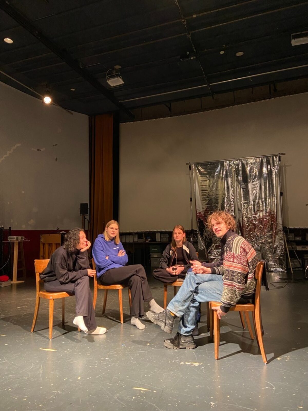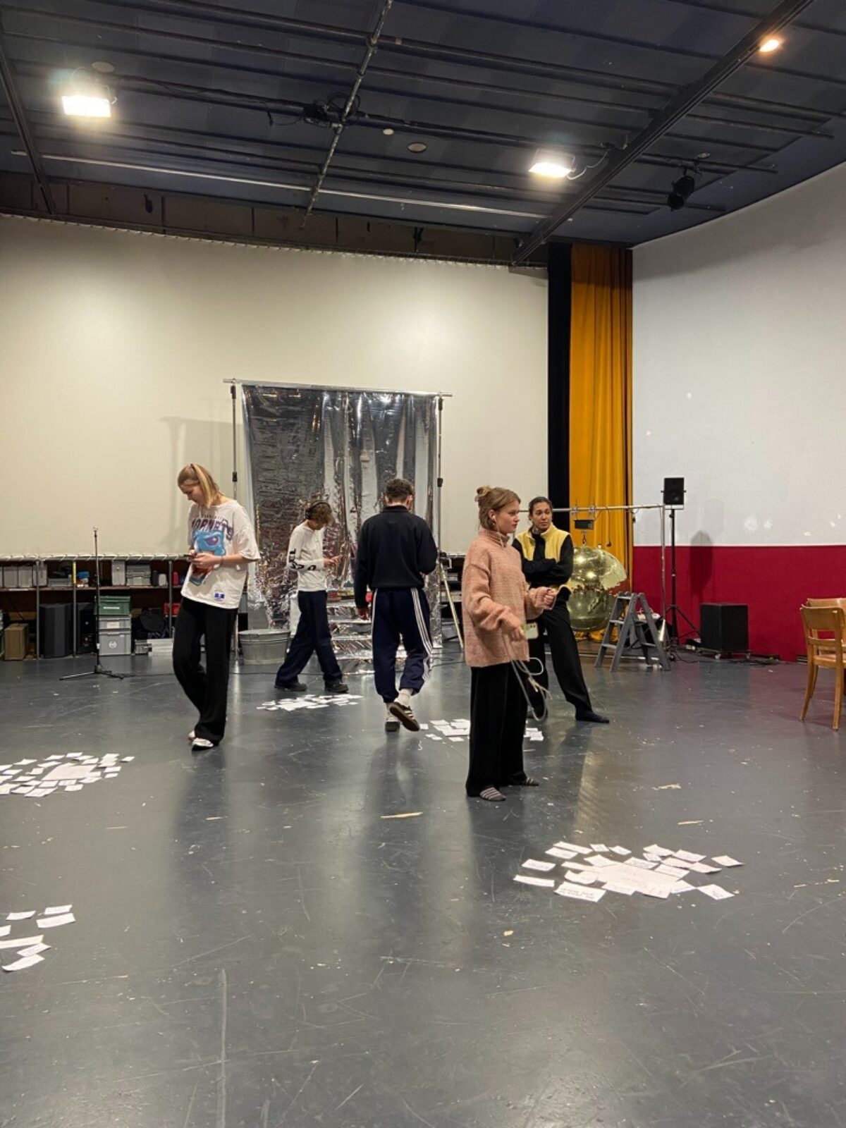 In der zweiten November Woche bezogen die fünf Spieler:innen Amanda dos Reis, Timon Dähler, Vivienne Vogt, Simon Moser und Elena Göldlin mit dem Produktionsteam rund um die Produktion «I want to belong (and sing a song)» der Jungen Marie unseren Probenraum das alte Kino Central in Suhr. Gemeinsam mit Regisseur Philippe Heule, der Musikerin Sarah Calörtscher, dem Kostüm- und Bühnenbildner Mikki Levy-Strasser, der Dramaturgin Maria Ursprung, der Theaterpädagogin und Produktionsleiterin Andrea Brunner und der Regieassistenz Yve Ilg forschten, diskutierten, improvisierten, sangen und tanzten die jungen Erwachsenen zu den Themen Zugehörigkeit und Abgrenzung und probierten in ersten Übungen mögliche Szenen aus.