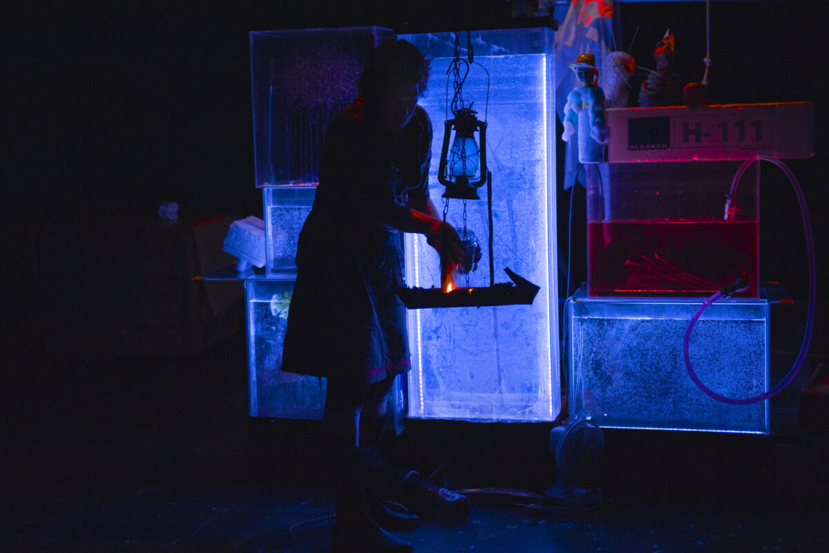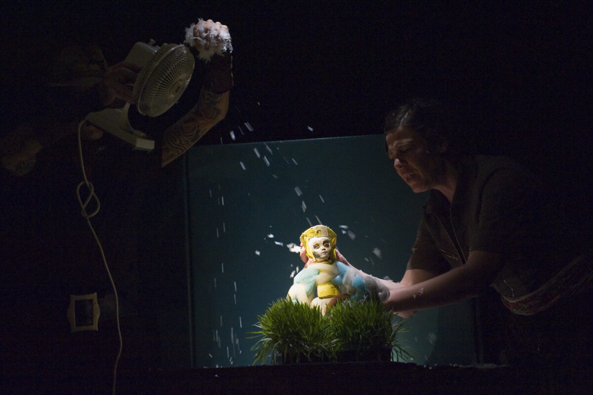 Der daraus resultierende Reichtum stilistischer Mittel und sprachlicher Register findet auf der Bühne seine Entsprechung in einer Vielzahl theatraler Formen. Die Inszenierung verbindet szenisches Spiel, poetisches Figuren- und Objekttheater, philosophischen Vortrag und wissenschaftliche Abhandlung.