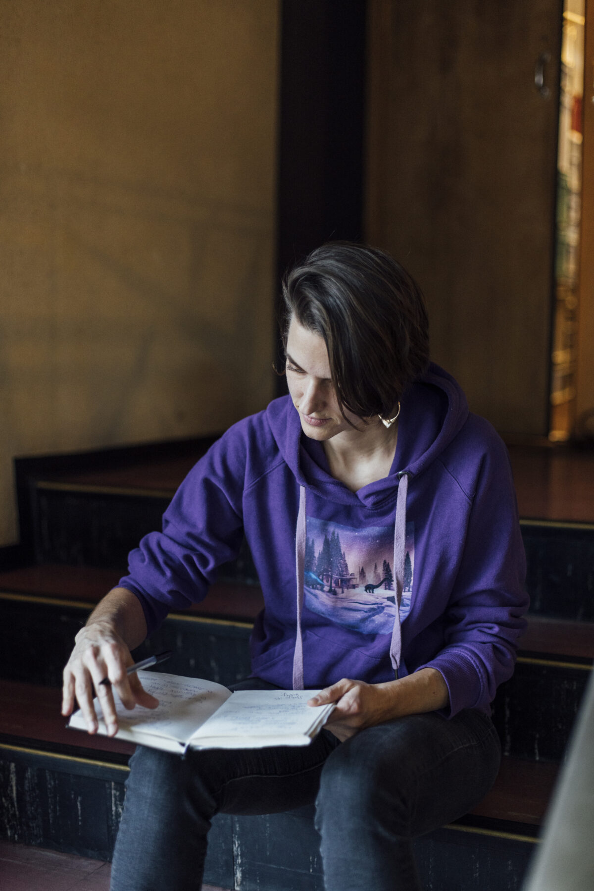 Schreibt und inszeniert. Seit 2022 ist sie Teil der Co-Leitung von Theater Marie und macht die Öffentlichkeitsarbeit.